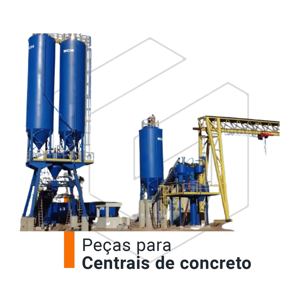 Fabricamos peças para centrais de concreto do tipo pá misturadora, pá raspadora, braço direito, braço esquerdo, braço central, revestimentos, eixos, vedações, acoplamento, mancais, rolamentos, chaparia, correia transportadora, mangote sanfonado, rosca helicoidal, células carga, fotocélulas, parafusos, porcas, arruelas, buchas.
